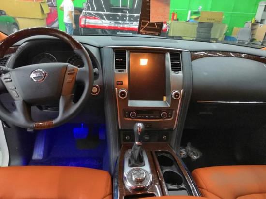 18款日产途乐Y62在内部整体采用了深色调的颜色搭配,带来具有高贵感的内饰氛围。同时,该车中控台及方向盘运用了大量的皮质包裹,在质感的营造上也较为出色。此外,这款车在换挡杆周围等区域融入了木纹装饰,这也相应提升了其内饰整体的豪华感。