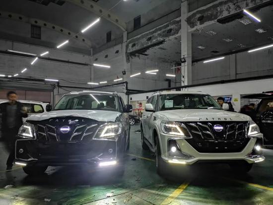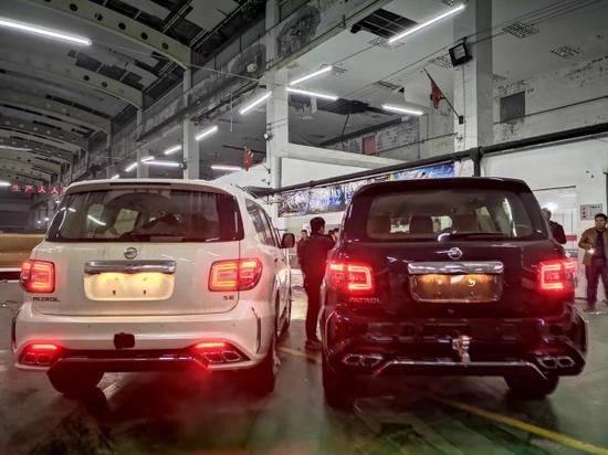 此车改装新款银爵大包围,LED灯,前中网, 20寸轮毂,行李架。尾部,改装4尾管,尾灯