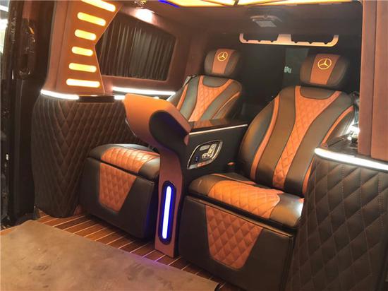 18款进口奔驰麦特斯采用意大利进口高级NAPPA真皮座椅、高回弹海绵坐垫,提供柔软舒适的依靠感,更显高档;电加热通风系统、电动按摩系统等功能,更快的缓解旅途疲劳,享受舒适之旅。三面六项调节蝴蝶枕,随心调节,总会找到适合姿势,彰显人性化设计。改装后座三连排电动沙发座椅,向后拓展可一键平躺变身奢华大床,商务出行可作为休憩佳所,合家出游首选。