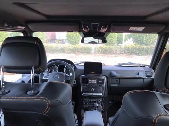 17款奔驰G5004x4配置:单天窗、22轮、红卡钳、双减震、氙灯LED日行灯、多轮廓电动包裹座椅、翻毛皮内饰(翻毛皮双色座椅、翻毛皮方向盘、翻毛皮门板、翻毛皮内顶)、前排座椅通风加热、二排座椅加热、哈曼音响(14个扬声器)、三把差速锁、中控碳纤维装饰、底盘舒适度调节、脚踏、前电眼、倒影、导航、多功能方向盘(蓝牙、定速巡航、换挡拨片)、双区空调。
