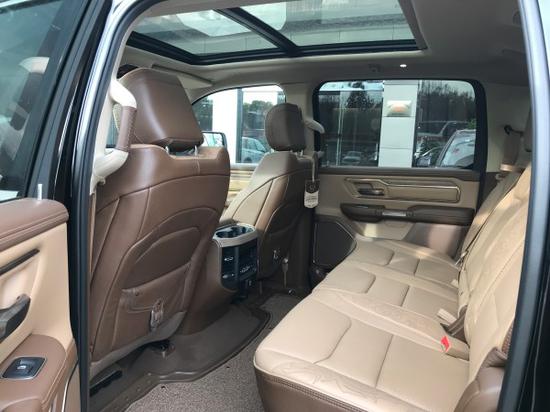 19款道奇公羊长角号尾部设计简洁明了,宽大的镀铬保险杠配合粗壮的双边单出排气霸气十足,后斗已选装货仓盖板,内部采用喷砂处理,粗狂之余也不乏细腻之处,同时增加了科技感,对于一款美式超级皮卡来说,牵引无疑是他天生的使命,尾部预留拖曳接口,配上全合金镀铬的保险杠既美观又实用,主动安全性也是杠杠的,道奇公羊长角号皮卡提供5.7LV8汽油发动机,5.7L发动机最大马力为395Ps,最大扭矩为552N·m,传动系统方面,将全系标配8速自动变速箱,这将对该车的燃油经济性和平顺性有较大帮助。