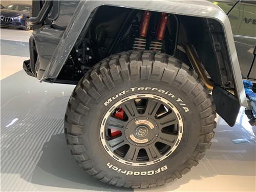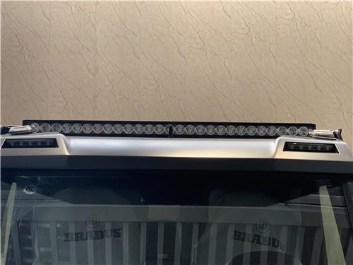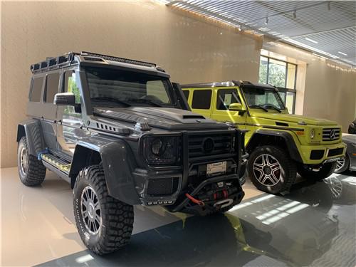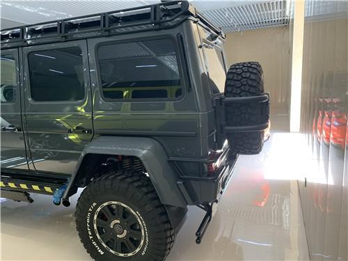 这辆550G 4X42从外观看就非常霸气,基于奔驰G级改装而来的它升高了接近20公分的底盘使得它拥有2.23米的高度,相比马路上一众车型都要高不少。加宽的轮距和宽体套件完美搭配,看上去非常和谐,就像一辆大号的奔驰G一样。