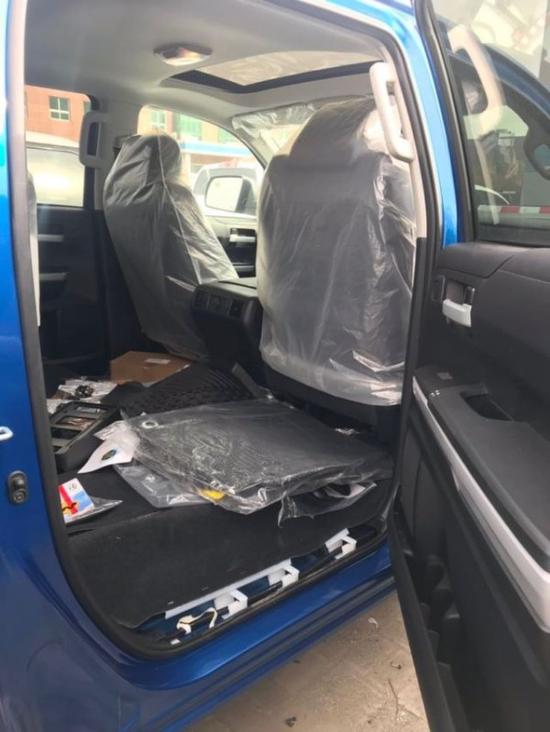 2018款丰田坦途SR5TRD运动限量版加版中控区被银灰色的面板划分为驾驶区与乘坐区,在宽大的车身内排挡杆更为接近驾驶员更便于操作,在内部设计上,丰田坦途皮卡低价座椅全部采用真皮制作,丰田坦途皮卡低价肌肉感的设计同样延续到内饰的设计中,丰田坦途可以适应不同的路况,丰田坦途强悍外观的背后,有着精细舒适的乘坐空间。