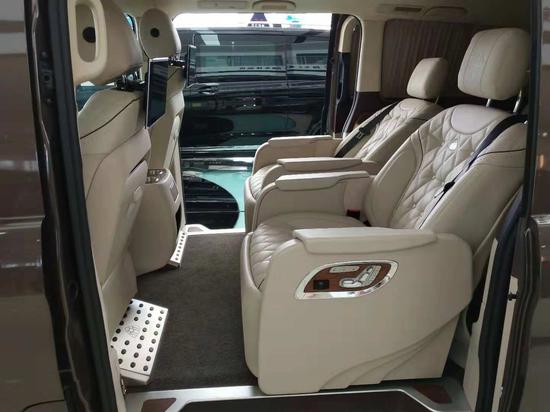后舱座椅为2+3的配置,座椅采用真皮包裹,采用奔驰S级迈巴赫棱形格缝制工艺和皮质激光打孔工艺,使得座椅能够更好的通风透气,还能有效的防止了螨虫等细菌的滋生,也方便对座椅进行清洁养护。第二排为两个独立航空座椅,他们不仅座面宽大舒适而且内部填充高密度海绵久坐不变形,座椅能够向后进行旋转方便与后排乘员互动交流,而且具有完美的衬托感!具有通风、加热、气动按摩等功能以及腿拖,通过座椅侧面对开关进行控制调节,可以保证极致舒适的乘坐体验。Rear cabin seat is 2 + 3 configuration, the seat is wrapped in leather, using Mercedes-Benz S-class Maybach prismatic lattice sewing technology and cortical laser drilling technology, so that the seat can be better ventilated and ventilated, can effectively prevent the breeding of mites and other bacteria, but also facilitate the clean maintenance of the seat。 The second row is two independent air seats。 They not only have a wide and comfortable seat surface, but also have a high density sponge inside。 The seat can rotate backwards to facilitate interaction with the back-row passengers。 They also have a perfect sense of foil! uuuuuuuuu It has the functions of ventilation, heating, pneumatic massage and leg drag。 It can control and adjust the switch through the side of the seat to ensure the extremely comfortable ride experience。