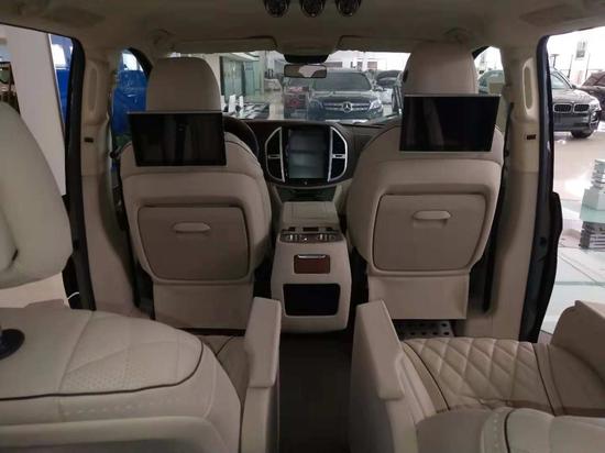 排三联排座椅,中间隐藏着中央扶手箱,内置有全彩触控屏,使得后排贵宾也能自如的操控车上的功能。一键放平靠背,车舱内又能惊现出一张双人床来。Three rows of seats, hidden in the middle of the central armchair, built-in full-color touch screen, so that the back row VIPs can also freely operate the car function。 One key is used to lay back the back, and a double bed can be found in the cabin。