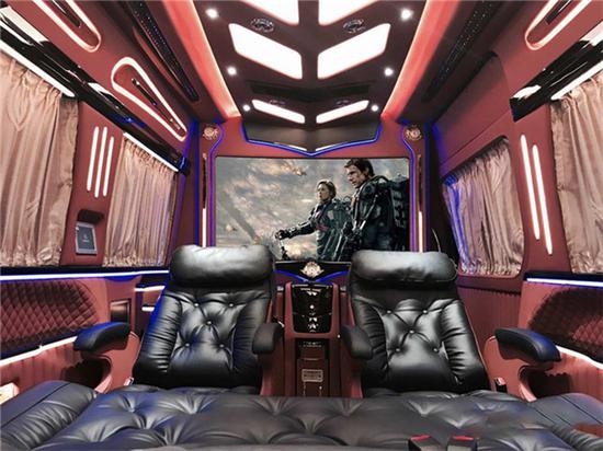 奔驰斯宾特7+2房车2张独立的航空按摩椅,后排3人沙发床,加上2张驾驶座,合计7座,另外整车为使空间利用越发灵活,吧台处精心置入了2张独立的隐藏座椅,完美实现隐藏9座座椅布局。