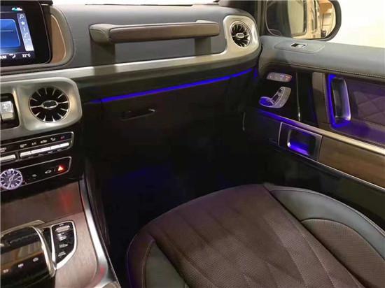 19款奔驰G63 AMG内饰3种可选的颜色模式和无级调光能够按需求提供舒适的驾乘体验,环境氛围照明系统与外部照明连接在一起,可自动启用,为车内提供令人愉悦的简洁照明。整车的档次、质感和科技配置相比较于老款都有着明显的提升,同时内饰质感和工艺都有了很大的进步。