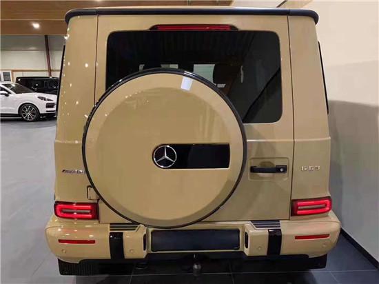 19款奔驰G63 AMG前脸大面积的进气格栅与两侧圆形大灯相互呼应,使整个前脸造型更为抢眼,使独特又运动的外观造型设计,更具时尚感。全新改款后的设计,既有越野车的粗犷,又充满了十足的科技感,同时越野能力也有着明显的提升,变得更加强大。