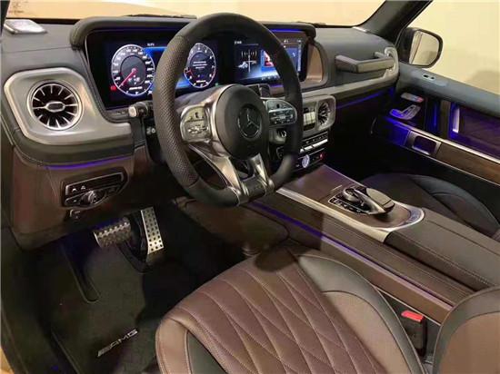 19款全新G63内饰方面,新G63保留了新G500的整体设计,除配色差异外,新车还换装了全新造型的平底式AMG运动方向盘,其两侧配以打孔皮质包裹,下部镀铬装饰的造型也与新G 500明显不同,看上去十分战斗。此外,全液晶仪表盘+中控大屏的双12.3英寸屏幕设计在新车上也没有缺席,营造出了浓郁的科技感。