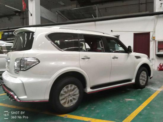 首先是前脸,看上图,运动包围中的前杠,nismo中网,这样改出来的效果会让整个车头看上去更宽阔,更大气。然后就是前大灯,文章中的展车是中东18款4.0途乐XE,原车是卤素大灯,把卤素大灯换成了欧司朗HID氙气灯泡,这里我跟大家解释下为什么不直接改一套高配的大灯总成,首先改一套大灯总成成本会相当高,而且你根本买不到原厂的大灯总成,跟你说能换成原厂大灯的都是扯淡,并且,如果改大灯总成,肯定要破坏原厂的大灯线路,改车最忌讳动原车线路,百分之九十车辆自燃都会因为后改的线路出的问题,而且副厂的大灯使用寿命有限,使用久了以后,车辆年检时灯光都监测不过,会带来很多麻烦。我们选择欧司朗氙灯灯泡,第一是因为他的照射亮度足够,第二也是考虑到后期的使用,哪怕以后坏了,京东上随时随地自己可以买一个换上 。