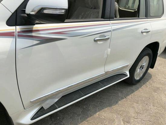 18款丰田兰德酷路泽4600GXR外挂配置:天窗 18轮 遥控启动 2气囊 外挂备胎 大屏 主驾驶电动座椅 迎宾灯 智能电动折叠后视镜 前后电眼 氙灯LED 航空踏板 彩条 镀铬门把手 桃木内饰 智能卡 一键启动 防擦条 大灯清洗 定速巡航 拖钩 蠕行模式 冰箱