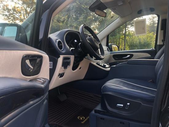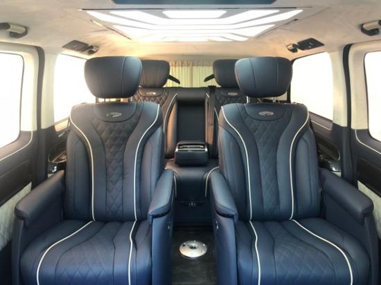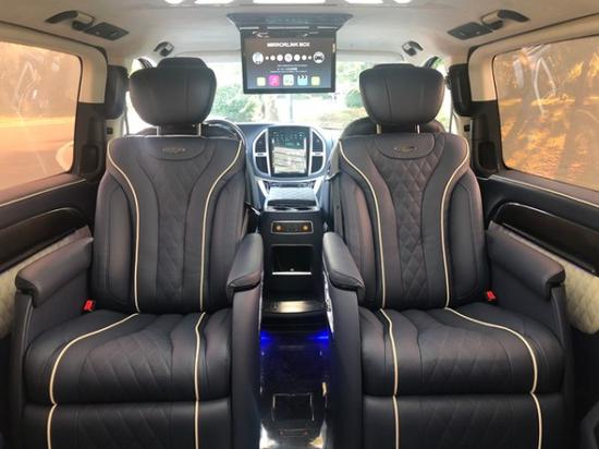 进口奔驰Metris改装隐藏6座,全车采用隔断设计,实木吧台可电动收展成隐藏式秘书座椅,吧台于座椅完美结合,座椅采取迈巴赫S500反向座椅。一键式超静音32寸高清液晶升降电视、日本健伍5.1影院级音响系统、索尼蓝光DVD,以及电动办公娱乐桌板系统、12V可翻转热水壶、指纹识别保险柜、220v电源接口USB.VGA多功能连接口,对于商务谈判来说,这一切的配置都来得恰到好处。