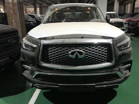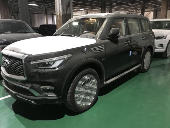 18款英菲尼迪QX80(改款) 二排中央扶手 多种驾驶模式 电动多功能桃木方向盘 一键启动 无钥匙进入 nappa真皮座椅(内饰) 主驾座椅记忆 主副8项电动座椅 腰部支撑 触摸大屏 自动空调 钟表 座椅加热 天窗 自动防炫目后视镜 桃木内饰 电尾门 冰箱 后排自动空调 后娱 第三排电动座椅 内拖车钩 前后电眼8个 led日行灯 自动调节大灯led 22轮 环影 胎压 8气囊 定速巡航 行李架 方向盘电动调节 bose音响
