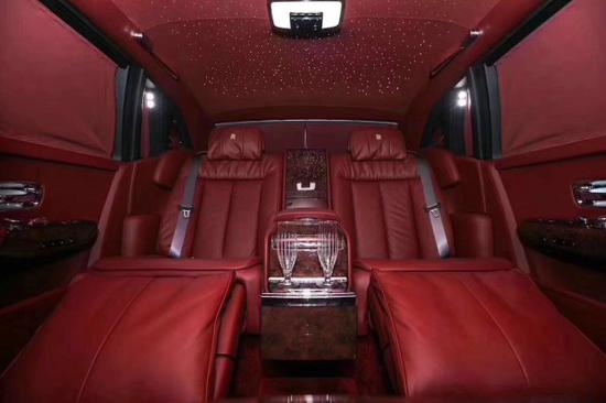配置:星空顶 全新2018款劳斯莱斯幻影加长版,4门4座版本 6.7T,V12,571匹马力,8速手自一体,双涡轮增压,长*宽*高5990*2018*1656,轴距3772。整车4年不限公里质保及保养 黑色车身彰显尊贵的身份,时下最流行的爱马仕橘色缝线搭配曜石黑内饰,绝无仅有的搭配。通过对铝的完美使用,庞大的车身控制在2745KG重,并采用全新的N74B68A双涡轮增压6.7T V12发动机,最大功率420KW,在1700转下就可以发挥最大扭矩900NM,与八速手自一体变速箱的的通力合作,使新幻影0-100Km/h的加速仅为5.4秒。 以黑色为主色调的内饰,搭配阿马尼亚克-暗橘,尊贵又不显庸俗。漫天星的顶棚,让乘坐者仿佛身临星空的怀抱下,art-deco反光镜带有梦幻的感觉。纯羊绒的地毯的触感更是无可挑剔。 特色配置:ACCENT内饰环境,定制时钟,座椅滚边(阿马尼亚克-暗橘),画廊Rivebstste(RSG),黑钢琴木(Piano Black),后排冷藏箱子,舒适入车,后排娱乐系统,野餐桌,黑色绒制车尾箱,前排座椅按摩,