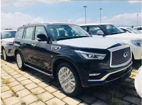 配置:英菲尼迪QX80 18款配置:QX80配置 5.6排量v8 398马力 7速 全时四驱 拖车模式 雪地模式 多功能方向盘 一键启动 无钥匙进入 nappa真皮内饰 nappa真皮座椅 主驾座椅记忆 主副8项电动座椅 腰部支撑 触摸大屏 自动空调 钟表 座椅加热 天窗 自动防炫目后视镜 桃木内饰 电动尾门 冰箱 后排自动空调 后娱 第三排座椅电动收放 隐藏脱钩 前后电眼8个 led大灯 led日行灯 自动大灯 22轮 环影 胎压 8气囊 定速巡航 行李架 方向盘电动调节 bose音响