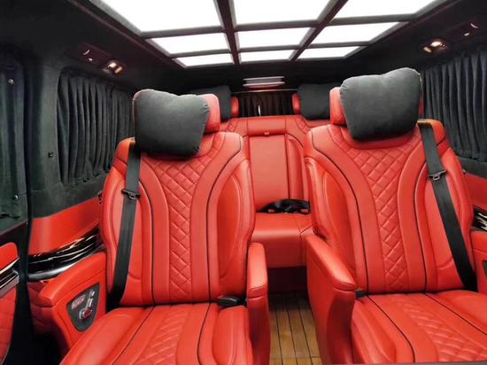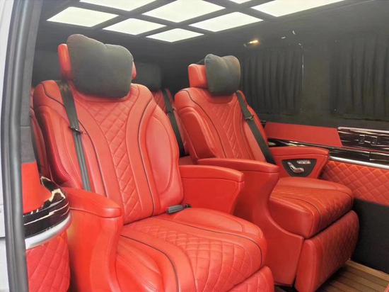奔驰威霆改装高顶隔断7座商务车第二排座椅安装进口首席航空座椅,加热通风按摩功能齐全,最大限度的减缓您的乘车疲惫。奔驰威霆改装无高顶无隔断7座商务车八向电动调节:电动头枕,电动腿托,前后电动调节,电动靠背调节。