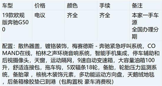 19款奔驰G500经过全新改款经典永恒的刚正车身依旧独树一帜,但在内里却发生了天翻地覆的变化。全新一代奔驰G级在保证强悍越野性能的同时,大幅度提升了豪华体验和行驶舒适性,力图实现自我突破。顶级越野车,纯种越野车,越野性能绝对是行业的领先地位,车子的空间也不错,空间利用非常的得当,隔音效果也不错,过减速带的时候车内没有很大的不适。19款全新奔驰G500拥有超高的回头率,强大的越野利器。