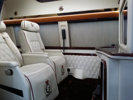 从打开福特E350车门到走进车厢,就是几步的距离,便让您从喧嚣的都市步入奢华的移动宫殿。顶级头层水牛皮包裹的高级航空按摩座椅,舒适度无法想象。配色也是十分的端庄,奢华而又有内涵。