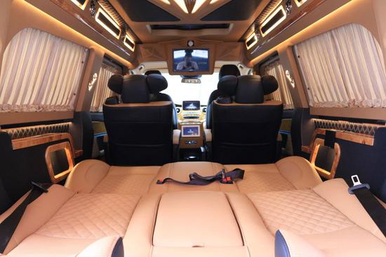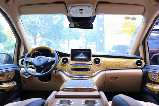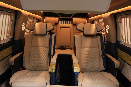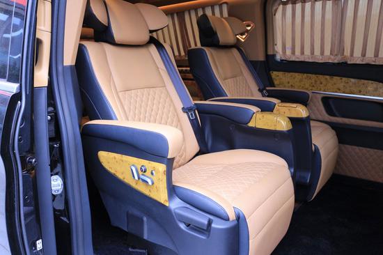 奔驰V260改装版,不管怎么改,改的都是内饰,发动机变速箱还都是基于奔驰V260的。奔驰V260搭载的是2.0T 4缸自主研发的发动机。最大马力达到211Ps,最大功率155kW,最大扭矩350N.m,即使满载情况下,动力依然澎湃有力。7挡手自一体变速箱,换挡平顺不顿挫,适合每位老板在后排高级商务空间来杯红酒,来庆祝生意洽谈的成功。