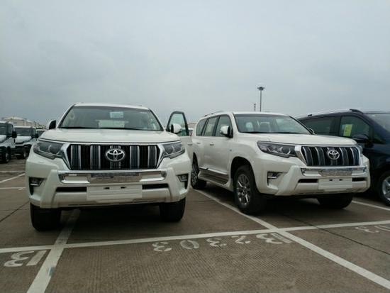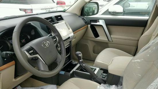 18款丰田霸道4000 VX 外挂 丝绒配置:天窗、9气囊、后挂备胎、丝绒座椅、大油箱、全时四驱、6速、中央差速锁、镀铬反光镜、镀铬进气格栅、车窗镀铬亮条、门边防擦条、前小杠、雾灯、LED氙灯,LED日间行车灯,大灯清洗、LED刹车灯、前排主副驾电动座椅及腰部支撑(主8副4)、炫彩仪表盘、大屏导航、多功能方向盘、桃木内饰、一键启动、无匙进入、三区空调、冰箱、倒影、遥控启动、电动折叠后视镜带转向灯、后雷达、巡航定速、航空踏板、发光迎宾门槛、后备箱门槛饰条、尾翼、银色行李架、脱钩、胎压监测、18寸轮毂。