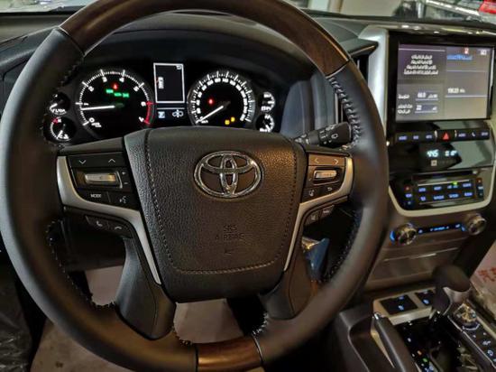 2018款中东版酷路泽5700顶配的外观与其他配置的5700大有不同,外观带有前后大包围,前脸镀铬条中镶嵌流水灯,20寸的抛光轮毂,尾翼高位刹车灯,全车镀铬装饰,而且外观的前车标是镜面的,这就是ACC雷达测距系统也叫自适应巡航系统,尾部是VXS标识,这是顶配的象征。酷路泽5700车内看着更明亮、同时也更显豪华,更符合中国消费者对“豪华”的定义。
