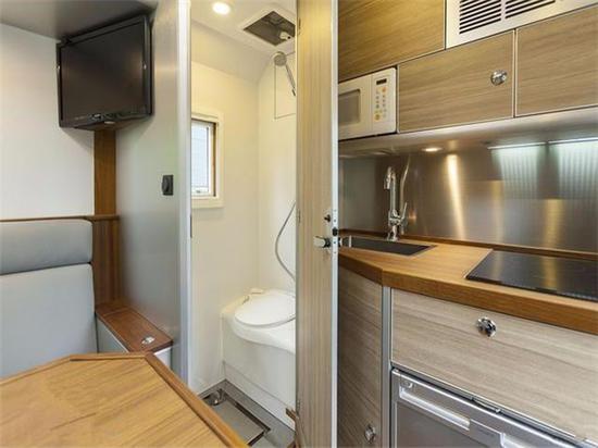 一体式防水卫生间及雨量感应式换气扇,提高运用体会。200L超大净水箱设计,可满意2人4天日子用水,最大化确保户外日子用水需求。
