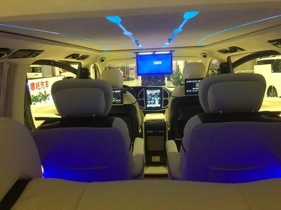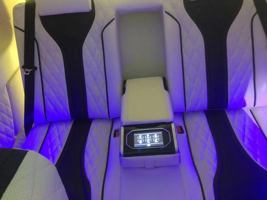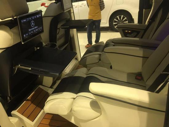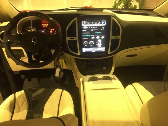 18款奔驰麦特斯改装七座商务车座椅旋转对坐,柚木地板上配置有可拆卸小方桌,时尚钢琴烤漆,高承重性,任意切换商务洽谈模式。后舱独立空气净化器时刻保持车内空气清新,更有大尺寸墨色玻璃顾全隐私。三连排电动沙发座椅,向后拓展可一键平躺变身奢华大床