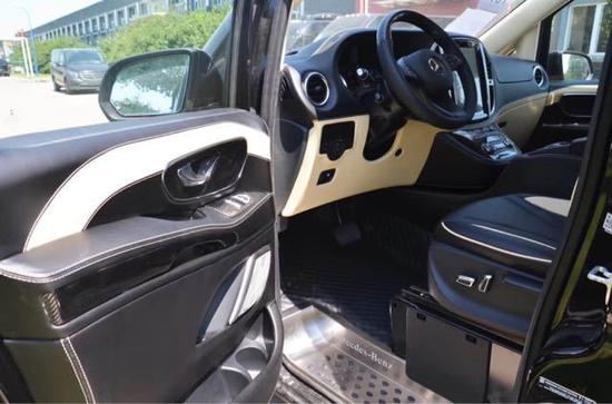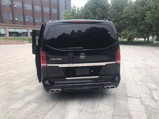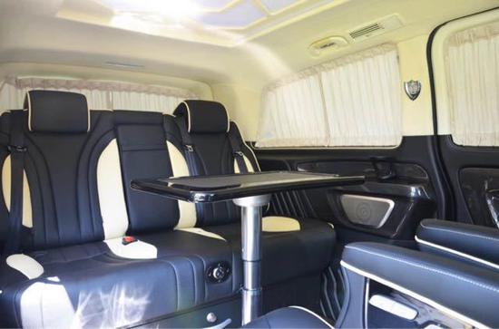奔驰Metris 18款 2.0T 汽油[维特斯][长5141mm、宽1928mm、高1910mm]:黑色车身咖色内饰、2.0T涡轮增压缸内直喷汽油发动机,7速手自一体双离合变速箱怀挡设计带换挡拨片,7座位,12.1寸巨屏中文导航带后置摄像头,自动感应大灯,电动调节后视镜,变道提醒系统,疲劳提醒,发动机自动启停系统,3种驾驶模式,中央扶手箱带内置冰箱,全新升级正副驾驶席6向电动调节座椅,第二排通风加热按摩电动可旋转航空座椅,第三排电动可放平沙发床,双侧电动滑动门带防夹功能,后掀尾门,高级氛围灯,迈巴赫顶灯,吊顶19寸液晶电视,游艇级防火柚木地板,进口豪华窗帘,小桌板,天窗,行李架,光亮式脚踏,进口德国马牌轮胎,全新升级版全车镀铬套件及17寸铝合金轮毂