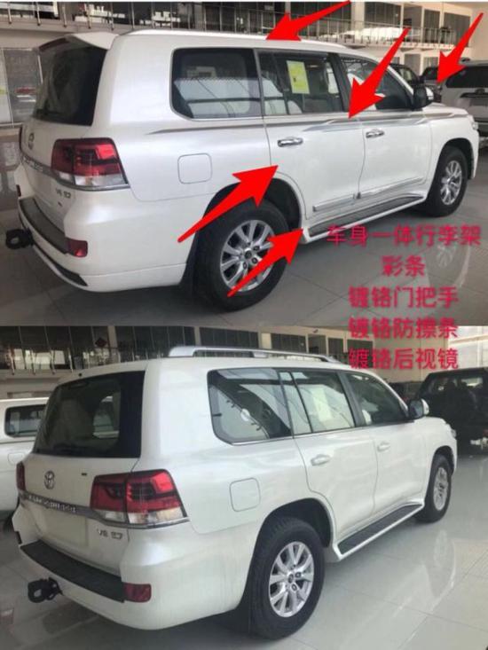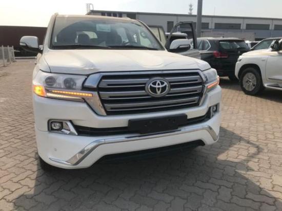 18款酷路泽5700VXR后娱前后包围高配版 报价91万白/米 环保公开 配置:后娱(双头枕DVD)18轮,天窗。8速,遥启,四门智能卡,LED氙灯,流水转向灯,大屏倒影,主驾电动,七座丝绒座椅,彩色液晶仪表,8气囊,前后包围,航踏,冰箱,儒行模式,镀铬门把手,电动折叠后视镜,桃木多功能方向盘及桃木内饰,前二后四电眼,底挂备胎,多地形驾驶模式选择,低速巡航,弯道辅助,车身稳定系统,胎压监测,巡航定速,电子恒温空调,车门迎宾, 彩条,行李架,防擦条,雾灯,拖钩,尾翼
