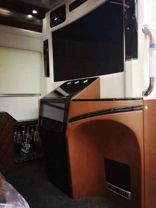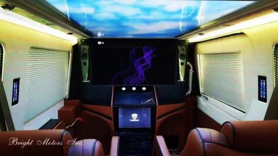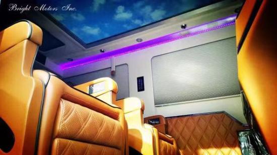 19款奔驰斯宾特云锦版头顶可改成浪漫情怀满天星顶灯,犹如在静寂的夜空中翱翔。脚踏高档柚木地板,坐在私密的移动包厢内,老板能享用彻底私密的影音包间,具有如家般的精致小生活。