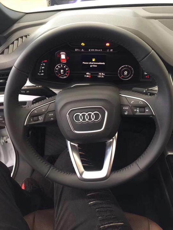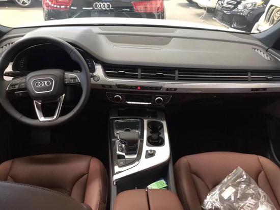 奥迪Q7的内饰造型是典型奥迪风格,材质高档、做工精细,真皮座椅和方向盘、深色木纹装饰的点缀都体现出了低调的豪华感。还有仪表盘的水滴造型很别致,中控台的功能键排列有序。在排挡杆的周边,布置了MMI多媒体交互系统和一键式启动按钮,体现出奥迪崇尚科技的一面。本公司奥迪Q7现车销售,车型颜色多选,款型配置丰富,咨询可致电下方24小时贵宾热线。