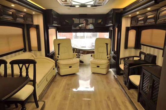 摩纳哥假日漫步者造型与传统A型自行式房车没太多惊艳的地方,“超巨型大巴”的设计非常震撼,车厢双边双拓展设计,也为车内提供了非常宽大的空间。