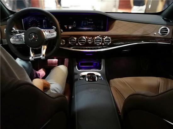奔驰S63 AMG Coupe延续了S级的设计理念,中控台采用皮质材质包裹,配合大面积的碳纤饰板使其更彰显运动化特性。三幅平底运动型方向盘两侧采用了打孔真皮材料包裹,握起来比摩擦力更强,防滑性更出色。左右区域的多功能按键功能齐全,还配备了换挡拨片。底部的AMG铭牌时刻提醒着驾驶者,这是一台AMG车型。仪表盘为两块12.3英寸的高分辨率液晶触摸显示屏。