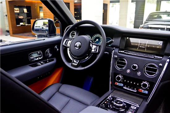 劳斯莱斯SUV-库里南内饰延续了全新幻影的设计风格,整体用料依旧一如既往的奢华高贵,中控采用大面积实木打造,配合方向盘上的实木点缀,既复古又豪华。中控屏幕尺寸为 10.2英寸的屏幕,轻触车门把手上按键就可以电动关闭,四座版的后排控制台与前部是断开的,在狭窄环境停车后排乘客可以选择任意一侧下车。