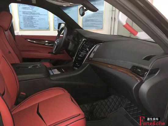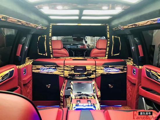 新款凯迪拉克总统一号隐藏六座商务车内饰部分:舱内隔断:可升降分隔屏,32寸超薄液晶电视 音响设备:BOSS环绕音响,DVD 舱内灯饰:氛围灯 LED灯饰,迈巴赫棚顶灯 舱内吧台:酒柜 咖啡机 舱内桌板:电动隐藏式伸缩桌板 地板材质:柚木地板 舱内天窗:全景开启式大天窗。