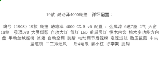 近日,港口最新消息:19款丰田酷路泽4000预售开启,全新陆巡V6细节图曝光,版本配置颜色清单抢先看,男人巅峰梦想越野座驾。越野车的最大特点是通过能力较强,同时也具有一定的载货能力,但运动性、舒适性并不突出;而把越野车的这些不足加强后,就可称之为SUV。既具备了越野车的功能,又能在城市中行驶,不失风范,通俗点就是能在城市中开的越野车。酷路泽4000最佳的性能,全新配置解读。文章底部咨询热线!