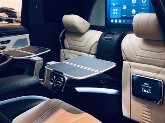 奔驰迈巴赫S600L在车内可切换七种不同颜色的氛围灯,一周内每天给自己不同的色调和心情,想必车主是乐于见到的。车内使用了大量的格纹真皮,后排拥有两个宛如航空座椅般的超大座位,能独立调节仰角。