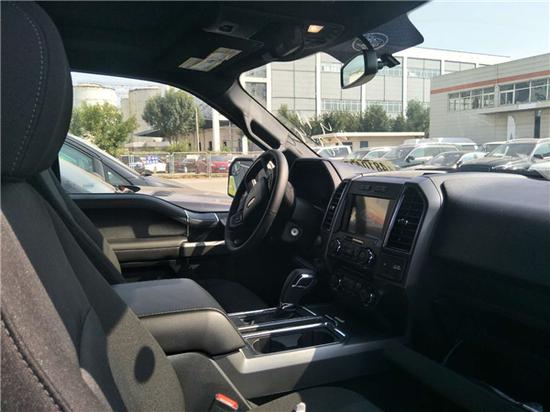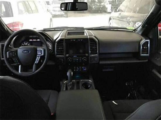 新款F150它的表面颇具动感,内饰奢华,配置富厚,同时兼具跑车的动力机能、越野车的全地形制霸本领和豪华轿车的乘坐恬静性,并且它的改装空间也很大。车内配备标准独特的皮革和布艺装饰的座椅,驾驶员侧的电动十向调节。这些座椅同时具备记忆功能。中央控制区搭配了触控式显示屏,其下方则是多媒体控制区及空调面板,采用旋钮+物理按键的组合。中控功能区域可分为三个小控制区,最上端为音响控制及导航控制,中间为收音机调节控制,最低端为空调及座椅加热控制。在内部空间的庞大基础上,福特也提供了非常具有舒适性与服务性的内饰配置。另外,新车还配备了一块大尺寸的全景天窗。