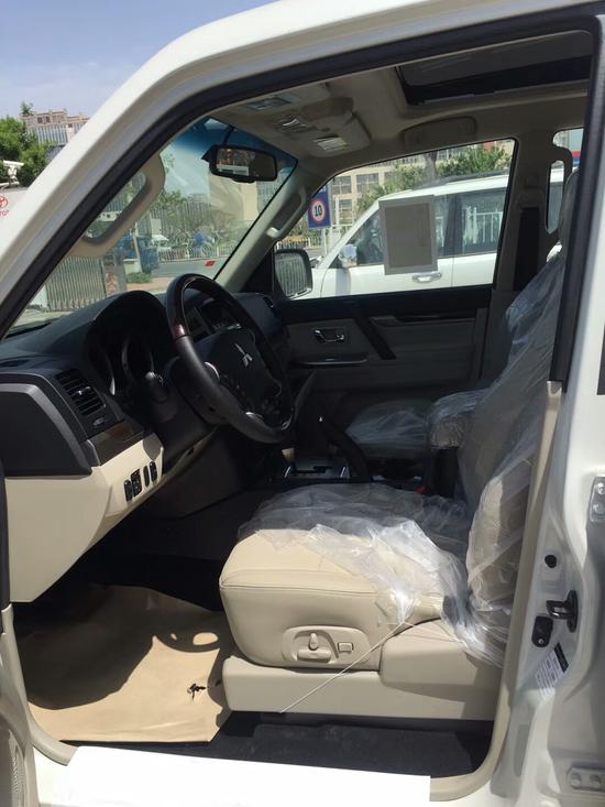 18款中东三菱帕杰罗V93 配置:帕杰罗 3.0 L真皮6 缸, 二代超选四驱, 欧4排放, 尺寸 (mm):4900X1875X1900, 输出 (PS): 177, 扭矩 (牛米): 264, 镀铬电动折叠外后视镜集成转向灯,胎压监测系统, 17英寸合金车轮,定速巡航, ,中央差速器锁, 7座。外部:金标,侧踏板,行李架, 天窗, 镀铬LED日行灯, 后窗除雾器, 镀铬前中网, 氙气+卤素大灯, 前后隐藏式脱钩, 镀铬外门把手, 后雾灯, 前后间歇雨刷, 高位刹车灯。内饰: 桃木真皮方向盘, 皮革排挡杆及四驱切换档杆, 仪表盘亮度可调,中央多信息显示系统,6.1英寸显示屏+ 倒车影像,美国来福音音响, 12 扬声器, 真皮座椅, 前排电动座椅, USB 端口, 免提电话系统, 多功能方向盘,冰箱, 全自动空调+后排独立制冷, 8气囊,油箱容量88公升,5速手自一体。