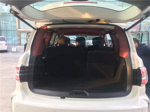 2018款日产途乐Y62采用了4活塞卡钳高性能前制动系统,大大提升了途乐的安全性能。强大的动力输出和重组的后备功率几乎可以带途乐去探索任何的艰难险阻。作为一台全尺寸SUV,空间绝对是其最大的优势。其中储物空间非常多而且尺寸也同车身一样都非常大。中央扶手箱配有制冷功能,在夏天可以当做车载冰箱使用。车身尺寸方面是途乐的优势,长宽高为5140/1995/1955,轴距3075