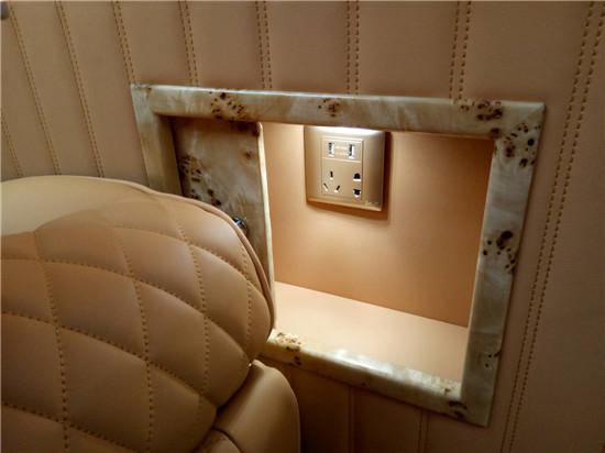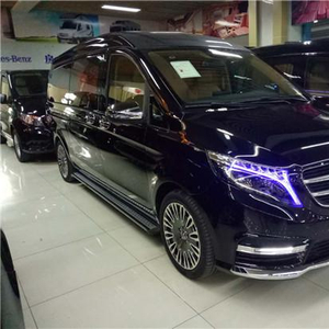 奔驰V250加高顶版的后舱采用2+2+2隐藏6座设计,并运用前后32寸液晶电视隔断形式 ,将整车的空间放大,配备了车载冰箱和电动胶囊咖啡机,车上影音娱乐设施一应俱全,出行再也不会觉得单调无聊,接待的时候也有更多的选择。音响采用的是日本健伍的环绕立体声音响系统,16组扬声器与1组低音反射式扬声器共创640W的极致听觉体验,多声道环绕音效技术将震撼乐声传递至每一个座位。吧台内暗藏玄机,两个GLS450反向吧台秘书椅藏于其内,打开秘书椅可形成对四座进行商务洽谈,关闭秘书椅后仓空间无限放大。