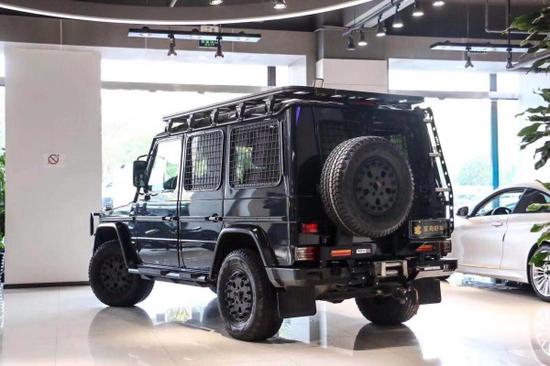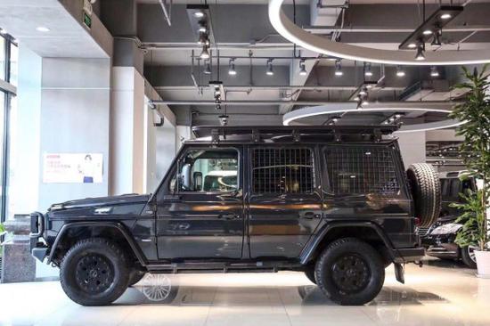 奔驰G300P 军版,带涉水喉,车顶行李架,锻造轮毂,定制磨砂机盖,玻璃保护网,四驱,ESP电子稳定程序、ASR驱动防滑系统,差速锁,前后2.8厘米厚保险杠、W461专业军工底盘及96L油箱,实乃越野神器,适合长途旅行。G300是军方特供车,全世界一年只生产约500台,约400台都会被军方订走,剩下的才会用于出口全世界销售。