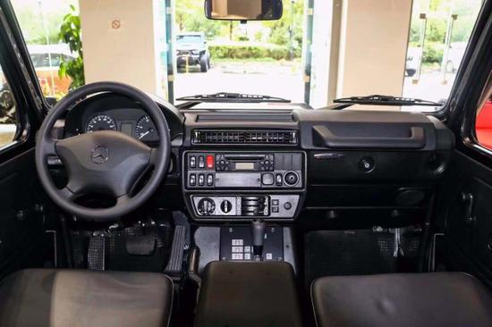 在内饰方面,G300依然将实用的理念延续到底,整个内饰设计朴实,各个功能区域清晰明了,很好的传承了G系列的经典设计。改装奔驰G300一改民用豪华、高贵的设计,而是采用将实用性进行到底的设计理念。在仪表台区域,G300采用传统机械式指针设计,可以显示速度、转速、水温与剩余油量。值得注意的是,作为一款柴油车,G300转速表最大值达到了7000rpm。方向盘采用真皮设计,没有多余的按键。可喜的是,奔驰G300配备了方向盘安全气囊,为驾驶员提供安全。