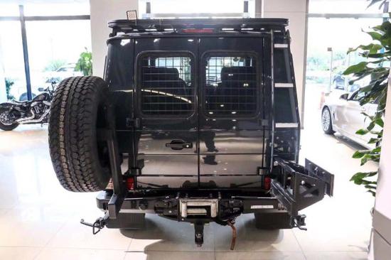 G300采用了4门手摇式车窗,以防止车辆电路损坏引发连锁反应。同时,4个用真皮包裹的独立座椅可以提升舒适感与豪华感。改装奔驰G300提供了宽阔、平整的后备箱空间,同时在四周安装了固定钩,可以有效地减少物品发生位移。该车后备箱空间巨大,如果有需要,临时多做几个人也是没有问题的。在后备箱盖板下方,可以隐约的看到滑轨,为添加不同装备提供便利。