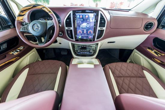 新款奔驰威霆 黑/紫米[俪星版] 七座高顶全隔断 5370*1928*2087 高顶尾翼 动感时尚 电动单开门 全车真皮包覆更多详细配置报价请添加下方电话微信号 全国客户分期贷款,因新闻介绍较少加微信更多精彩视频图片等着您了解您所了解不到的商务车房车进口车高端豪华车内部消息)(购车咨询电话:文章结尾处!)