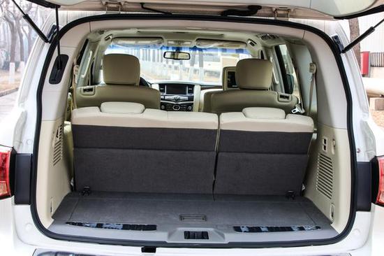 即使是满载状态,QX80依然能提供足够的储物空间,放几个50寸的行李箱没啥压力。