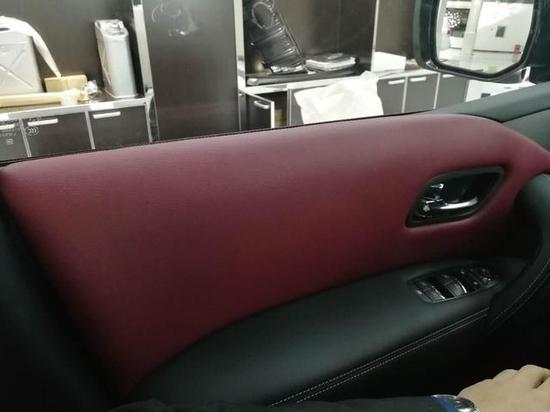 原厂黑色内饰,无迎宾踏板黑色的丝绒座椅,质感很不错,不过还是有很多客户喜欢真皮座椅,下面这个就是客户加装的红色真皮座椅,颜色很漂亮。