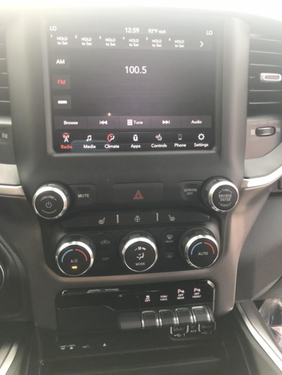 19款道奇公羊大角牛皮卡在内部设计上还是延续了美式那种比较粗犷的风格,规整的中控台设计看上去比较死板,但丰富的配置会让你不由得为其称赞。中控台的设计简洁硬派,符合公羊的气质。仪表盘底边有花纹,则更加凸显了这款车的文雅性。软性材质的仪表台设计,摸上去手感非常舒服,并无些许生硬之处。