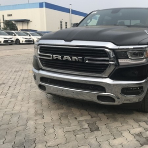 2019款道奇公羊大角牛不仅外观上刚劲有力表现出皮卡车所具备的硬朗风范,而且内部配备的豪华性在同级别车中同样可圈可点。道奇公羊长角号的眼神中没有透露出一丝的活泼神韵,唯一展现出来的只有凶狠。2017款道奇公羊长角号进气口位于右侧大灯的位置,高度在一米左右,高于绝大多数轿车和 SUV,另外20英寸的大脚也算是运动气质的一种表现。硕大的中网造型同样很震撼,“高鼻梁”的设计风格也是车头部位凶猛的精髓之处。车头使用了小幅前倾的俯冲式设计思路,意在突显霸气和威猛。