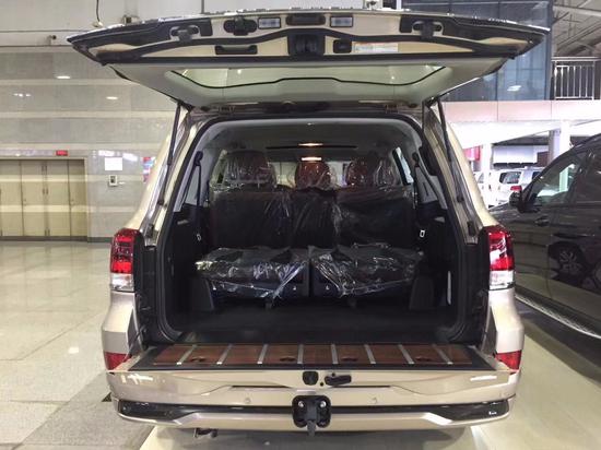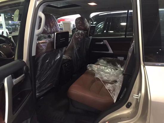 18款丰田酷路泽5700VXR限量版整个操控区域色调为深色系,仪表盘、方向盘和排挡等位置均配以桃木装点,尽显豪华质感。不但具有DVD导航,这款车的倒车 影像还可以显示在内后视镜上,中央扶手箱还装备了冷藏箱,这些都与中规版车型有所不同。18款丰田酷路泽5700VXR限量版在中控台的面板换成与内饰新色系更搭的黑 色钢琴烤漆材质,真皮座椅与桃木内饰的搭配使整个车内更显高贵。
